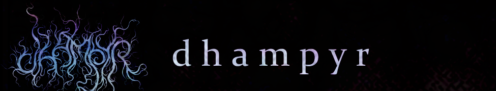 Dhampyr is neon Hosanna; Dhampyr is brackish waterflakes; Dhampyr is the illegible sign of SAMSARA; Dhampyr is the peony slop of a dozen faltering gardens. Dhampyr is a riddle for lonesome Sylvias.